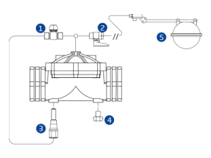 1-Needle Valve; 2-Ball Valve; 3-In-line Finger Filter; 4-Plug; 5-Float;